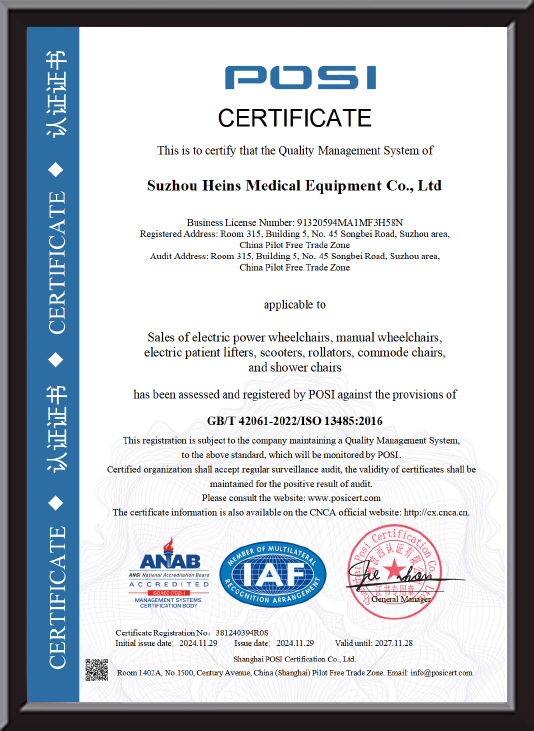 Chứng nhận độc lập của các thành phần chính là đặc biệt quan trọng. Các sản phẩm chất lượng cao sẽ cho biết bản lề đã vượt qua bài kiểm tra tiêu chuẩn ISO và đầu nối động cơ đạt mức chống nước IP54 và các thông số cụ thể khác. Cơ chế gấp của Công ty TNHH Thiết bị Y tế Tô Châu Heins đã nhận được một số bằng sáng chế quốc tế, đây là sự chứng thực tốt nhất về chất lượng sản phẩm. Người tiêu dùng nên chú ý kiểm tra các trình độ kỹ thuật này khi mua hàng để tránh bị quảng cáo mơ hồ về “chất lượng cao” đánh lừa.